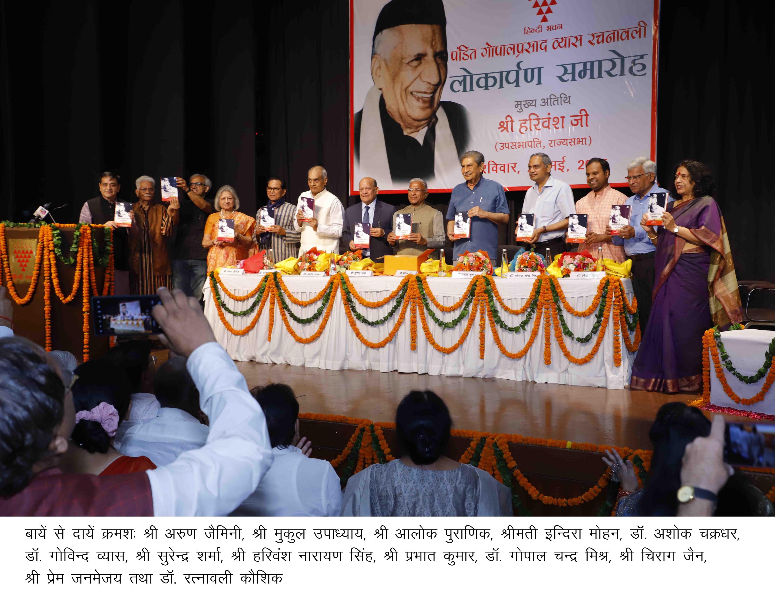 पं. गोपाल प्रसाद व्यास जी के प्रशंसकों, पाठकों, पत्रकारों, साहित्यकारों और गणमान्य व्यक्तियों से भरे सभागार में इस समारोह के मुख्य अतिथि राज्यसभा के उप-सभापति एवं प्रसिद्ध पत्रकार श्री हरिवंश नारायण सिंह जी ने रचनावली का लोकार्पण करते हुए कहा कि इस रचनावली का लोकार्पण करना मेरे लिए गर्व का विषय है। उन्होंने कहा कि व्यास जी के बहुआयामी व्यक्तित्व और कृतित्व को किसी एक विधा में नहीं बांधा जा सकता। वे हिन्दी भवन के संस्थापक, प्रसिद्ध पत्रकार, स्तम्भकार, कवि, लेखक, व्यंग्यकार, संयोजक, संपादक और महान हिन्दी सेवी के रूप में हमेशा याद किये जाते रहेंगे तथा यह रचनावली व्यास जी के असंख्य चाहने वालों के लिए आनन्द और ज्ञान का स्रोत सिद्ध होगी और आने वाली पीढ़ियों को प्रेरणा देती रहेगी।