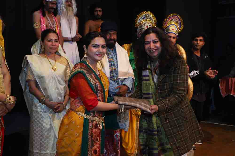 हिंदी भवन के न्यास मंडल के सदस्यों ने नाटक के निर्देशक,सभी कलाकारों, सूत्रधार, मेकअप मैन, संगीत और लाइट संयोजक को अंगवस्त्र देकर सम्मानित किया।